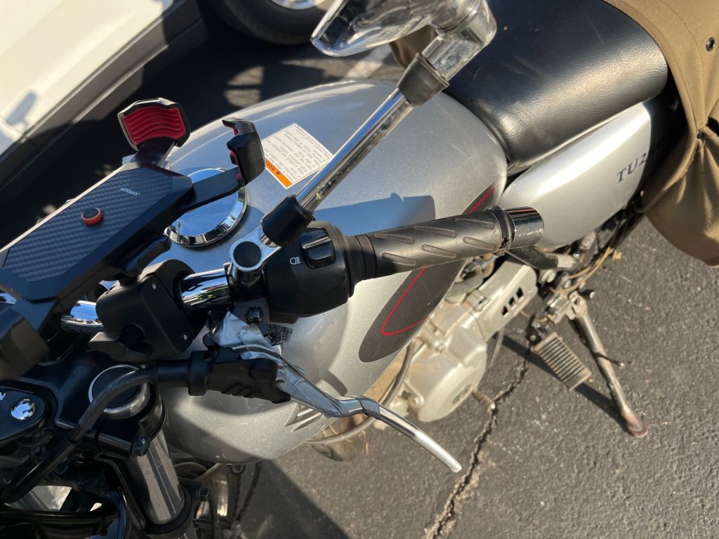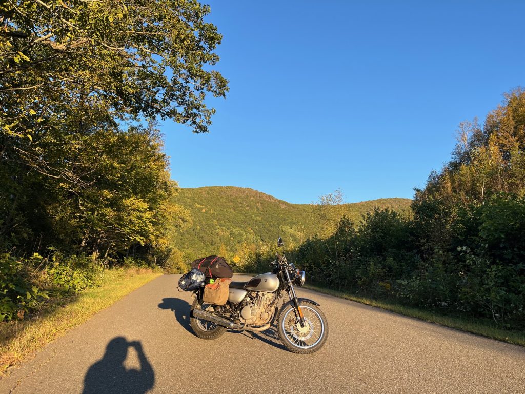 Upon inspection (again), a rock had bent the rear break lever so that it was now permanently pulling the rear break. Furthermore, the lever portion was bent up and out, making the riding position awkward. Luckily, I was able to loosen the rear break rod so that the break wasn’t engaged. I could still activate it, but I decided not to push it. To my chagrin, I also found that my break light was now permanently on. I managed to start the bike again and hobbled my way down towards Bridgewater. Once I made it to more navigable terrain, I experimented with switching gears. It worked. If I was careful I could still work the clutch. Feathering had been the problem. With the ability to test these features, and having really no other choice, I rebuilt my confidence to ride the 20 minutes from Bridgewater to Woodstock.