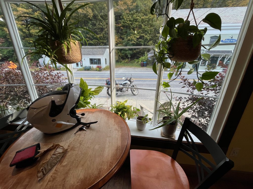 I made my way back out of the woods, once again marveling at how different everything seems in daylight. My plan was to head back to Woodstock for some breakfast and to plan out the future of this trip. I just had to get there. I was moving for about two minutes when the clutch lever broke off again. At least now I had some experience riding with it busted, so I limped into town. Both Suzi and I must have been a pretty sorry sight. I parked the bike, happy that it was a Sunday and parking was free, and stepped foot into a peculiar little coffee shop called Dreamscape Coffee. Imagine a parlor from the late 1800s and make it goth and also a coffee shop. That comes close. There are plenty of coffee shops that over complicate something as simple as coffee7, but you could tell that these guys took pride in their craft. Even more importantly, you could tell that this shop was part of the community. Most patrons were greated by name and received “The Usual” and I was welcomed warmly and with no pity. Turns out the barista also used to ride. This coffee shop felt like a safe haven while I contemplated my next steps.