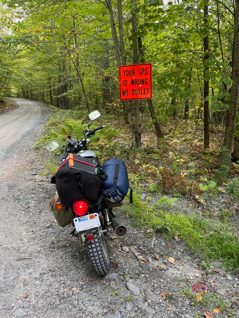 What was I to do? It was pretty clear that I would not be able to continue the next 5 days on a busted clutch. Even if I could, the episode with my bike not starting had shaken my confidence. I had gotten lucky this time, but what if this happened again when I was in the middle of no where in Maine? I had friends in Burlington. I could make it up there in a few hours and crash while I wait for a new clutch lever to arrive. Or maybe there was a dealership that had one? In the end though, I had to come to terms with what I already knew: The trip was over. I have a principle that I can push myself, my gear, or the route, but never all three. I had gotten to a point where I was doing exactly that, and it had gotten me in trouble. I had gotten lucky this time, but I did not want to stick around to find out what happens when it runs out. And so, I charted the route home.