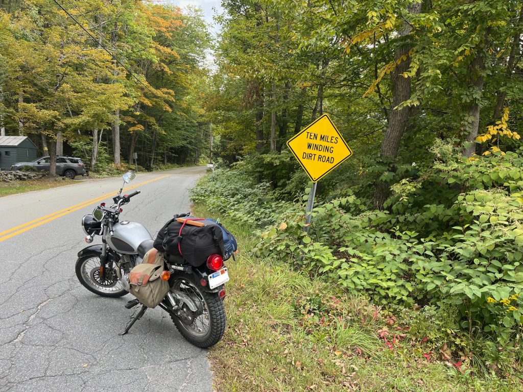 Then the trail took me up through Athens and into Grafton. This portion of the ride was incredibly beautiful and it felt like it would never end. The bike loved the dirt and I loved waving at people and them waving back. I felt like a guest and not a tourist. In Grafton I stopped at a general store for some lunch and to do some more charging. I figured I should also let my people know how things were going. This was also the first time that I saw evidence of other motorcyclists doing what I was planning to do. This was after all a well established motorcycle route. As I was leaving the store, ready for the next bit of the journey, a group had accumulated outside, ready to get their lunch. They were on large bikes, well equipped with machines that were more than capable of handling what this trail could throw at them. I found them intimidating, but they were very friendly. And I might be mistaken, but maybe I even saw a glimmer of awe in their eyes that someone would dare to do this trip on a 250?