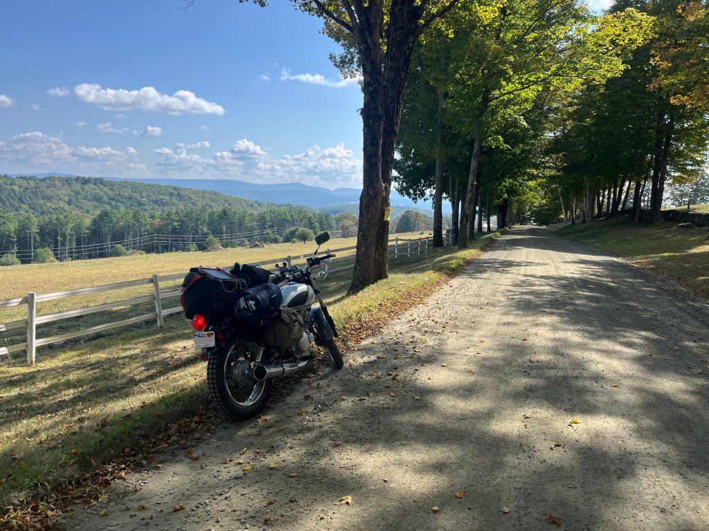 The super glue almost bought me a few miles before the lever broke again, but it was enough to rebuild my confidence to chart a way home that would take me on some pretty dirt roads heading south, towards Bellows Falls. By the time the lever broke off againg, I had learned to use the clutch even in its broken state without issue. The only change was that I now permanently held it to make sure it did not fall off while I was speeding down the road (The musculoskeletal price was one I would have to pay the next few days). I followed the roads south, finding freedom in deciding my own route as I went, and came across some spectacular views.